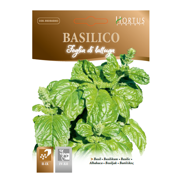 Il basilico foglia di lattuga, chiamato anche riccio napoletano si riconosce dalle foglie grandi e bollose, arricciate, di un bel colore verde chiaro. Si tratta di una pianta aromatica dal profumo intenso.