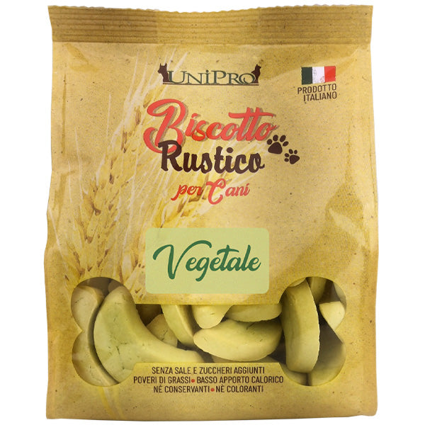 Biscotto per cani, prodotto italiano. Formula vegetale con carote e piselli.