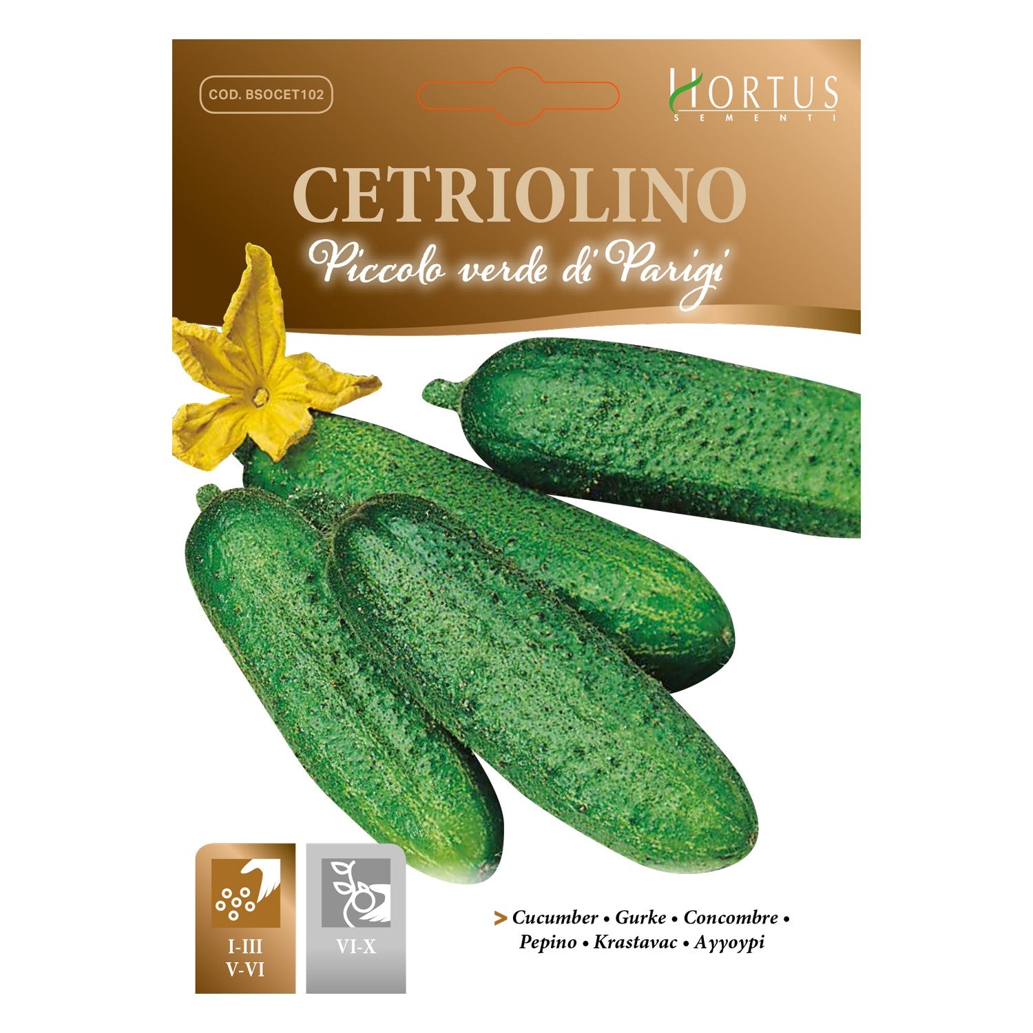 I semi di cetriolo sono generalmente di piccole dimensioni e di forma ovale. Possono essere di colore marrone, grigio o nero, a seconda della varietà. I semi di cetriolo "Piccolo verde di Parigi" sono solitamente venduti in bustine o sacchetti di carta o plastica, contenenti un numero variabile di semi, a seconda del produttore.