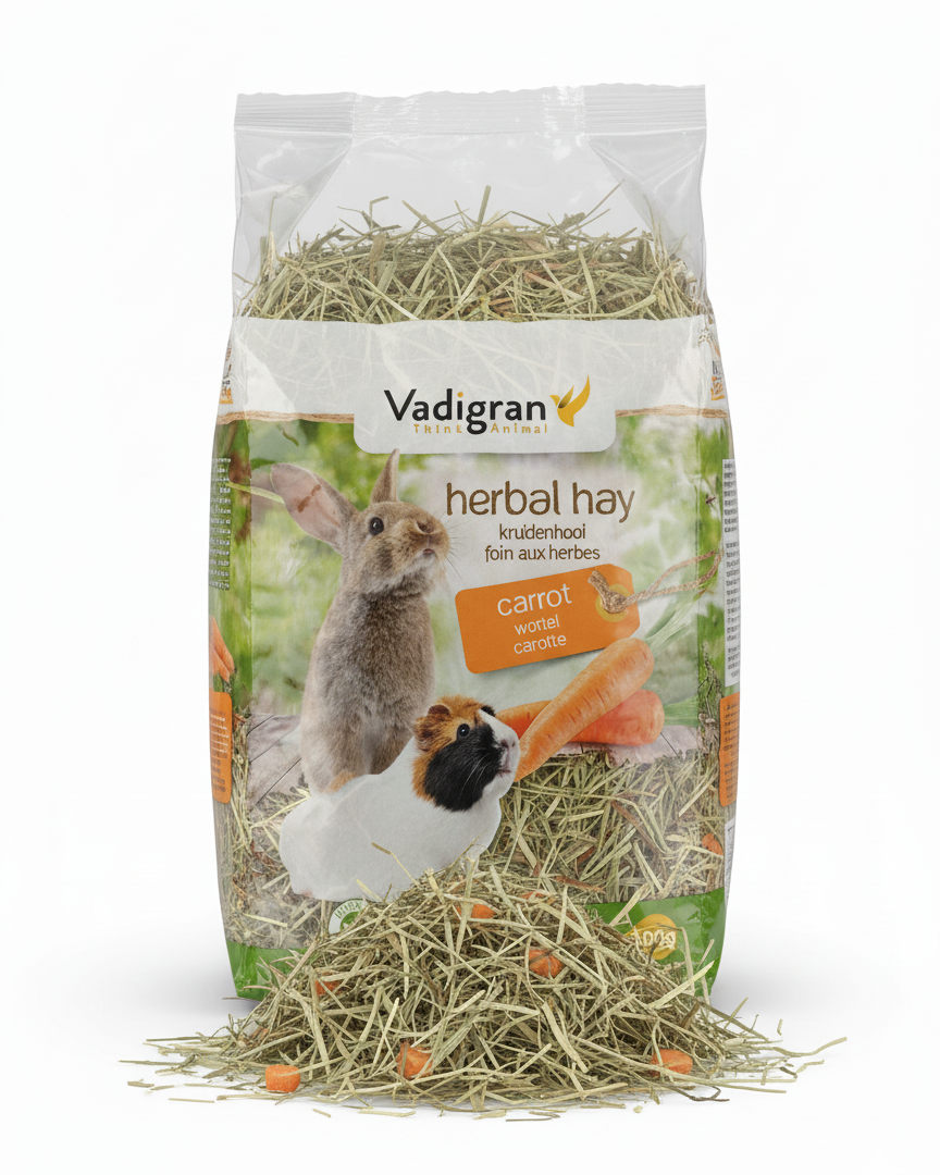 Fieno di alta qualità, ricco di fibre. Ideale per conigli, cavie, cincillà e altri piccoli roditori, contribuisce a una corretta digestione e all'usura naturale.