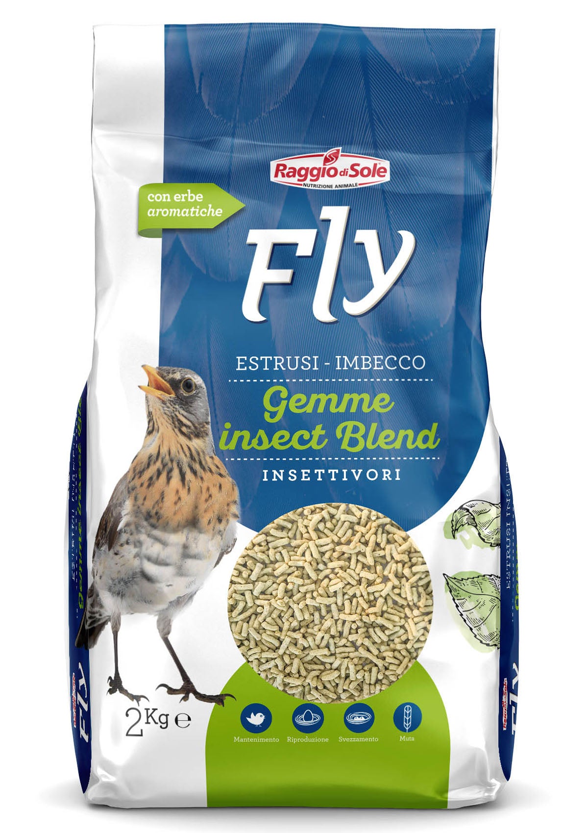 GEMME INSECT BLEND della linea Raggio di Sole Fly è un alimento completo estruso (softballs) ricco di proteine animali particolarmente indicato per l’allevamento di uccelli insettivori. Ideale per il periodo di imbecco, svezzamento, muta, canto e preparazione cove.
