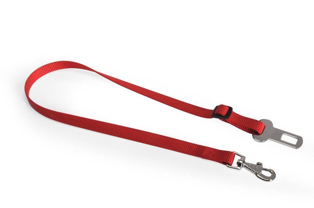 Guinzaglio in nylon con apposito gancio per la cintura di sicurezza nell'auto.