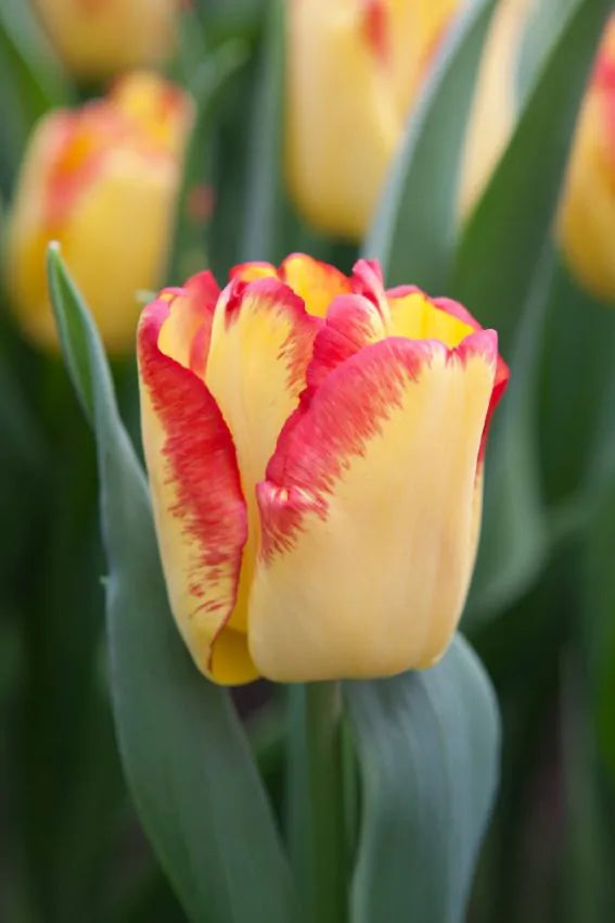 Scopri i bulbi di Tulipano 'Cape d'Or' (Cape Town) di Royal Seeds, una magnifica varietà Triumph che accende la primavera con i suoi colori caldi. I petali, di un giallo oro intenso, sono elegantemente bordati di un rosso fiammante, creando un contrasto cromatico di grande impatto visivo. Ideali per creare aiuole spettacolari, bordure definite o per coltivare in vaso su balconi e terrazzi, questi tulipani sono anche perfetti come fiori recisi per portare la bellezza della primavera in casa. Facili da coltivare, garantiscono una fioritura abbondante e vivace a metà primavera.