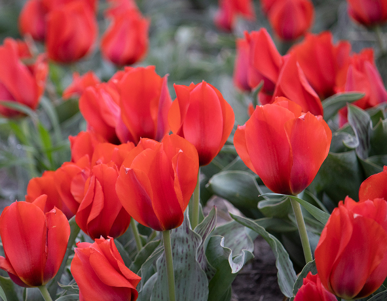 Aggiungi un tocco di unicità al tuo giardino con il Tulipano Greigii 'March of Time'. Questa esclusiva varietà si fa notare per il suo incredibile fogliame rosso, una caratteristica rara che offre un forte impatto cromatico ancora prima della fioritura. I fiori, di un rosso intenso, emergono con eleganza da questo sfondo particolare, creando un contrasto affascinante. Perfetto per bordure d'effetto, giardini rocciosi e contenitori, 'March of Time' è una scelta audace per chi cerca qualcosa di diverso per la propria oasi primaverile.